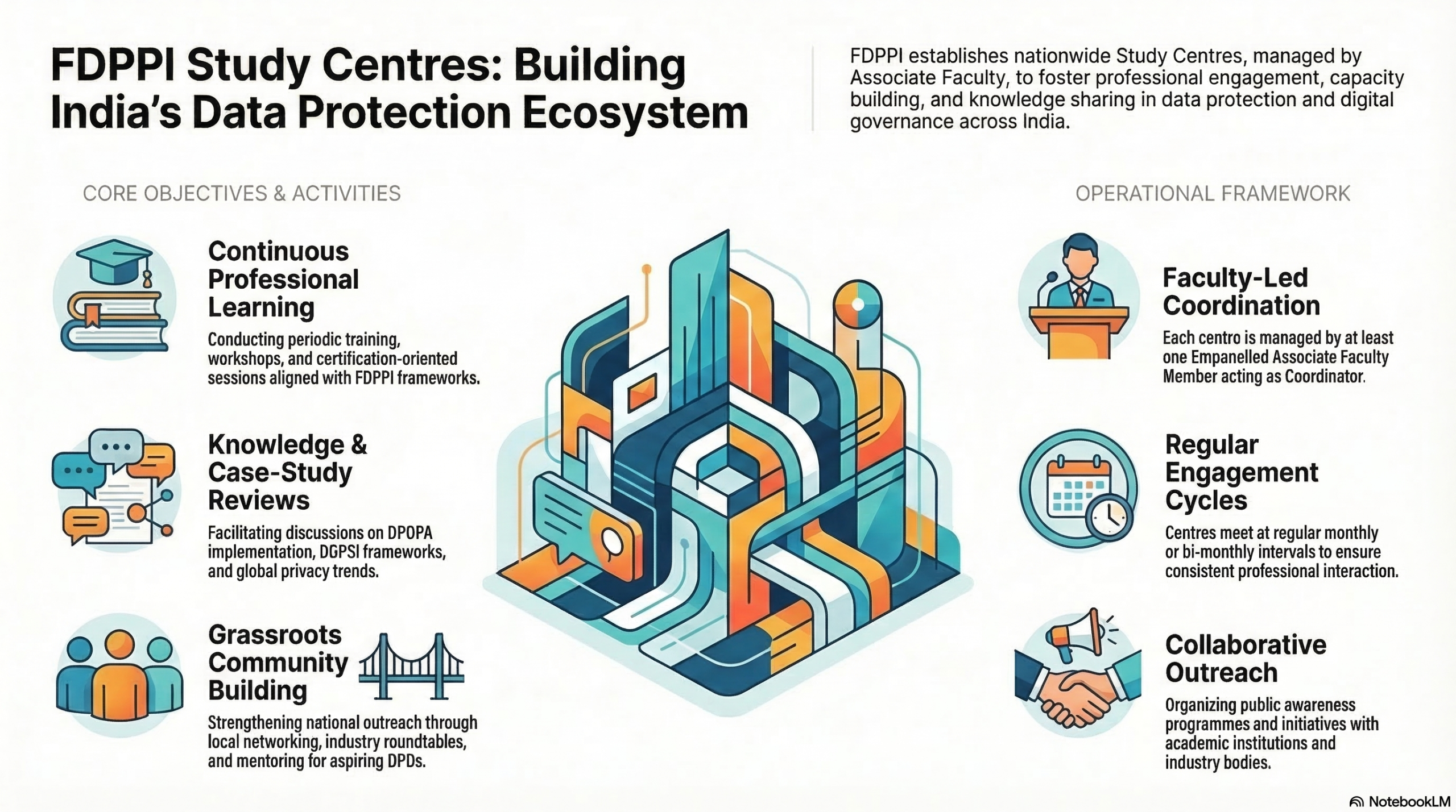 The Foundation of Data Protection Professionals in India (FDPPI) proposes to establish FDPPI Study Centres across different cities in India as part of its capacity-building and community-development initiatives in the field of data protection, privacy, and digital governance.